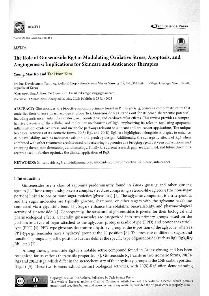 (한국장인인삼, RG3파워 RE메모리 파워, 대표 김태현, 고영매 논문 개재)
